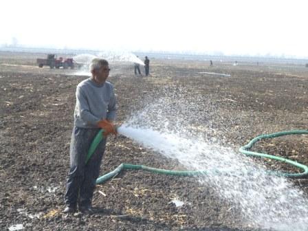 连续的干旱,给龙亢农场的秋种工作带来了严重的不利影响,使得小麦播种延迟。据气象部门预测,未来一段时间内,该地区无明显降水,旱情仍将持续发展。目前,龙亢农场已掀起秋种抗旱高潮,农业经营中心科学调度水源,各家庭农场充分利用现有的水利设施和喷灌机械,全力以赴进行抗旱抢种,确保小麦一出全苗,为明年丰收打下基础。(图为龙亢农场二分场职工常青正在对已播种的60亩小麦进行喷灌。)
