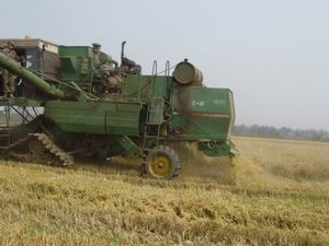 为改善土壤理化结构,增加土壤有机质含量,建设 高产稳产农田,大圹圩农场在今年午收工作中,进 一步加大秸杆还田工作力度。农场要求各分场大型 收割机必须全部装配秸杆还田粉碎装置。对有粉碎 装置而不使用的,对相关责任人按每亩10元予以处 罚。目前,全场已基本杜绝焚烧小麦秸杆现象,午 季秸杆还田率达到了100%%。图为收割机秸杆粉碎场 面。(邝正宣) +